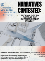 The Human Rights Institute proudly presents our Fall event series, Legal Machinery of Repression—a series that brings together voices revealing how repression leaves traces of defiance, memory, and testimony that outlive the machinery itself.